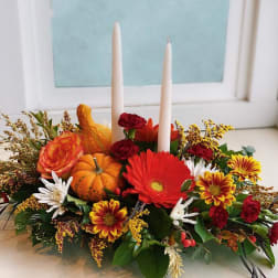 Price: $95.00Autumn Centerpiece with Two Taper Candles