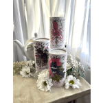 A reusable drink container holds seasonal blooms. Two gifts in one! As always, substitutions may happen because our stock constantly changes. Call shop with questions.